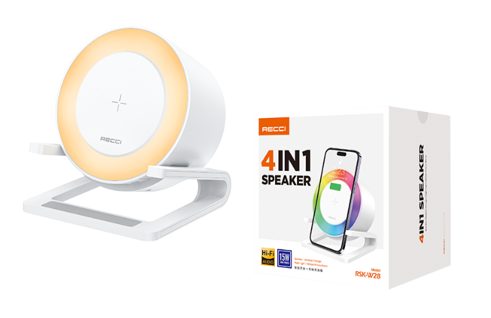Recci RSK-W28 4 in 1 Bluetooth Speaker with Wireless Charging 15W